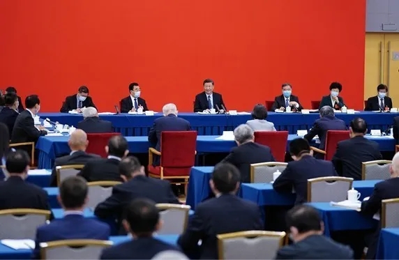2020年5月23日上午,习近平总书记看望参加全国政协十三届三次会议的经济界委员,并参加联组会,听取意见和建议。新华社记者 谢环驰/摄