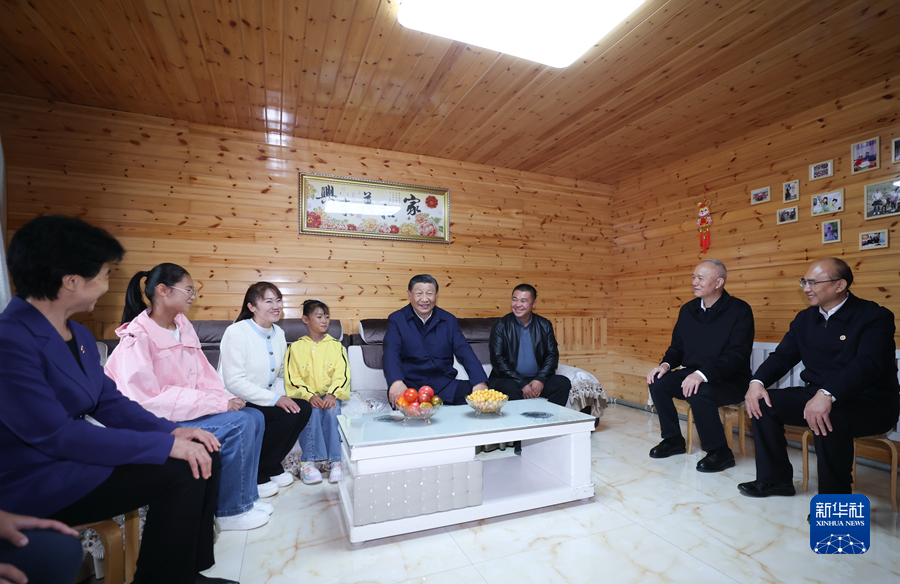 9月6日至8日,中共中央总书记、国家主席、中央军委主席习近平在黑龙江考察。这是6日下午,习近平在大兴安岭地区漠河市北极村,同村民史瑞娟一家亲切交谈。新华社记者 鞠鹏 摄