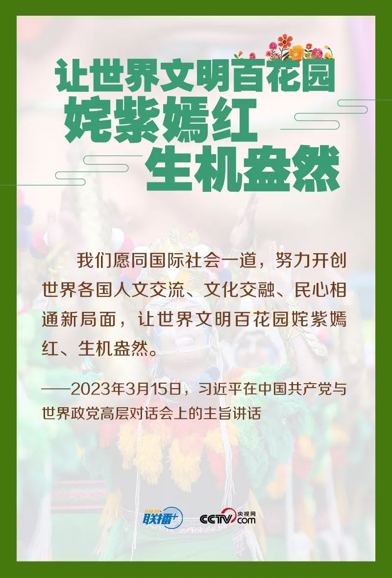2023年年初,习近平总书记在中国共产党与世界政党高层对话会上首次提出全球文明倡议。他强调,我们要共同倡导加强国际人文交流合作,探讨构建全球文明对话合作网络,丰富交流内容,拓展合作渠道,促进各国人民相知相亲,共同推动人类文明发展进步。