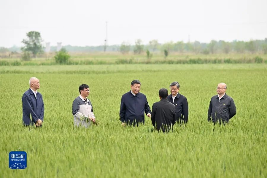 5月11日至12日,中共中央总书记、国家主席、中央军委主席习近平在河北考察,并主持召开深入推进京津冀协同发展座谈会。这是11日上午,习近平在沧州市黄骅市旧城镇仙庄片区旱碱地麦田考察时,同种植户、农技专家亲切交流。新华社记者 李学仁 摄
