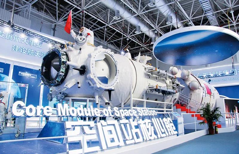 党的十八大以来,中央企业认真落实创新驱动发展战略,涌现一大批具有世界先进水平的重大科技成果。图为2018年11月6日,在珠海举办的第十二届中国国际航空航天博览会上展出的由中国航天科技集团研发的中国空间站核心舱模型。国务院国资委供图 代振莹/摄