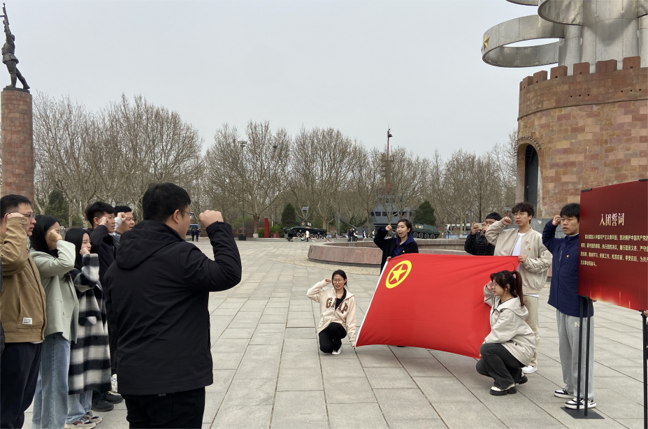 活动最后,在纪念馆胜利广场胜利纪念塔前,教工团支部书记徐瑞深带领全体师生重温入团誓词,激励全体共青团员牢记入团誓言,弘扬爱国主义精神,增进爱国主义情感,珍惜来之不易的红色江山,发扬革命传统,增强斗争精神,勇于战胜前进道路上的各种艰难险阻。