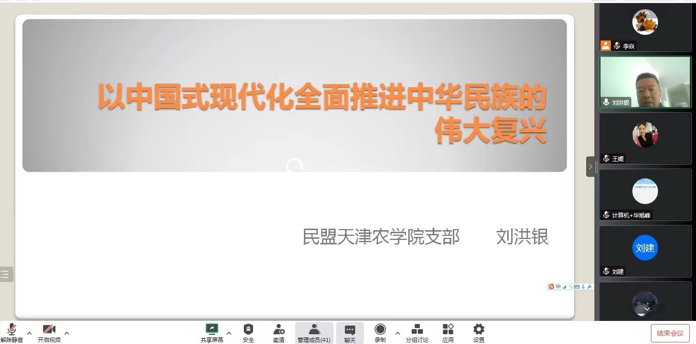 11月13日下午,beat365党外代表人士以线上会议形式召开学习贯彻中共二十大精神报告会,深入学习中共二十大精神。民盟天津市委会委员、民盟beat365手机版官网支部主委刘洪银教授作了题为《以中国式现代化全面推进中华民族的伟大复兴》的辅导报告。