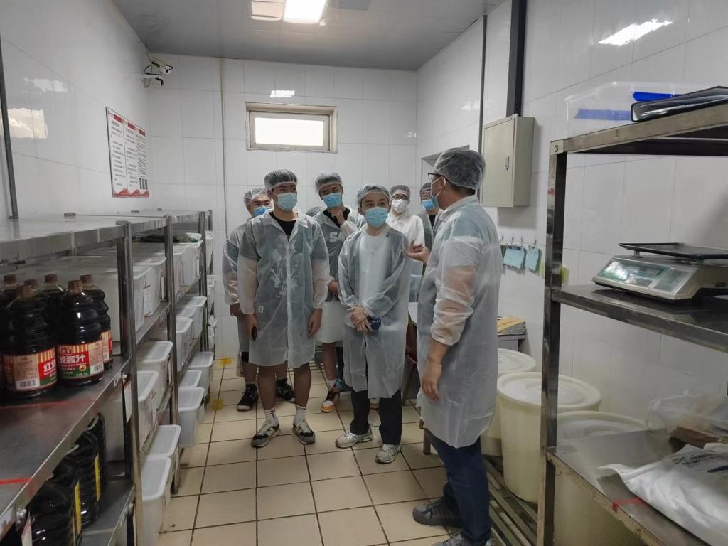 在饮食服务中心老师带领和解说下,学生代表先后对粗加工间、主食加工间、烹饪间、调料间、洗消间、食堂食材进行参观、查验,详细了解了餐具清洗消毒、食品储存、饭菜加工等各个环节的工作。