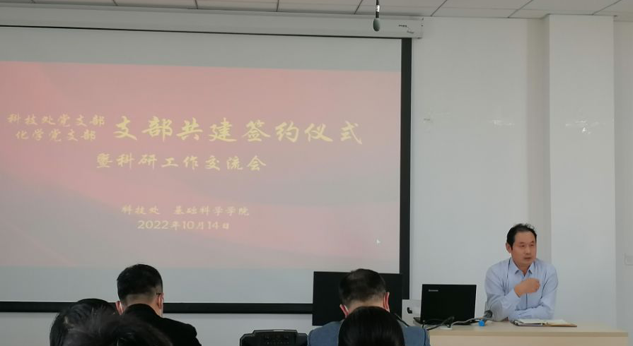 10月14日,机关党委科技处党支部与基础科学学院化学党支部结对共建续签仪式暨科研交流活动在beat365慎思楼数学建模实训室举行。