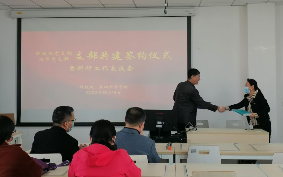 科技处党支部书记(乡村振兴研究院常务副院长)刘秀杰和化学党支部书记朱华玲现场共建签约,双方一致表示,结对共建是助力基层党组织和党员队伍建设的重要方式,是加强双方交流的重要桥梁,通过开展党组织活动,共同推进党建工作,科技处与基础科学学院的联系将更加紧密、更加深入,党建互促共建的政治优势将更好地转化为科研业务发展优势。
