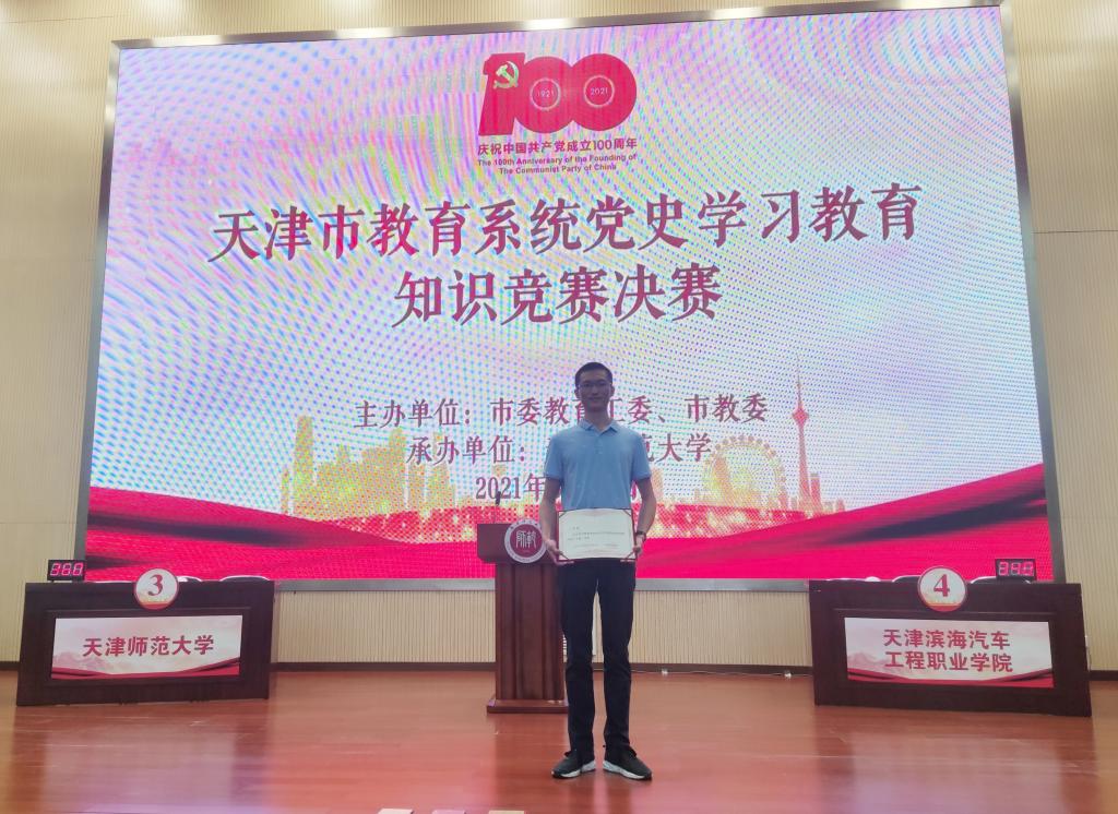 5月18日,由市教育两委主办的教育系统党史学习教育知识竞赛决赛在天津师范大学举行。beat365选派的王展鹏同学荣获二等奖。