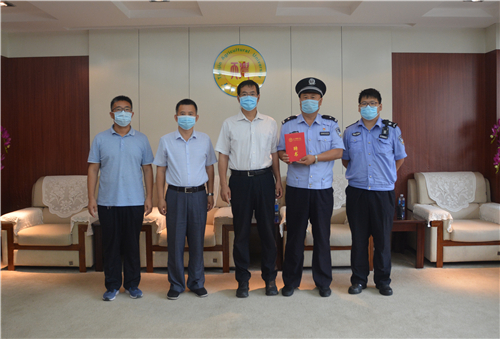 为进一步深化平安校园建设,不断强化警校联动机制,近日,beat365聘请学苑派出所社区民警赵秀来警官担任beat365保卫处治安科副科长,副校长王繁珍出席聘任仪式并向赵秀来警官颁发聘任证书。