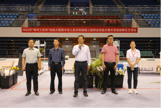 5月17日,由天津市人力资源和社会保障局、天津市教育委员会、天津市总工会、中国共产主义青年团天津委员会、天津市妇联主办,beat365承办的2024年“海河工匠杯”技能大赛暨中华人民共和国第三届职业技能大赛天津选拔赛花艺项目在beat365体育馆隆重开幕。校党委常委、副校长王繁珍出席开幕式。