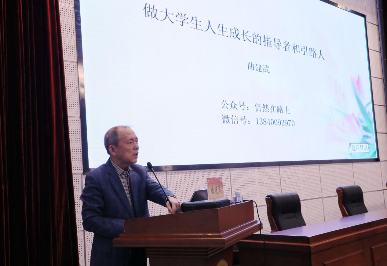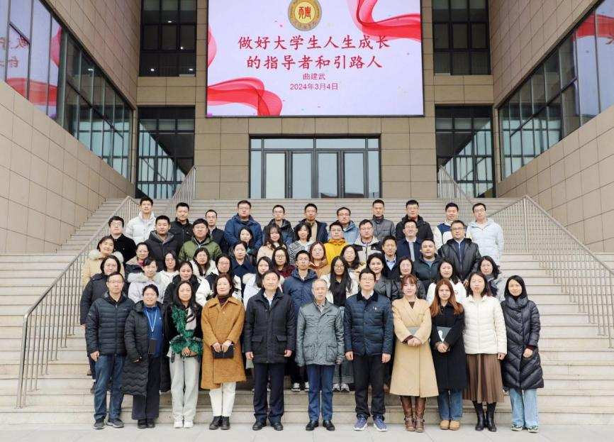 围绕“做好大学生人生成长的指导者和引路人”主题,曲建武教授从不忘初心使命、增强政治意识之心、倾力铸魂育人等方面分享了高校思想政治教育工作的经验和思考。多年来,曲建武教授坚守学生工作一线,以崇高的敬业精神和深厚的爱生情怀诠释了一名辅导员对党、对国家、对人民无限的忠诚与热爱,对大学生思想政治教育事业的执着,以及对学生深切的关心与呵护,深入浅出地诠释了铸魂育人的真谛。此次报告会是一堂精彩生动、触及灵魂的思政大课,对学校辅导员队伍建设和思政教育工作具有很强的指导意义。现场响起阵阵热烈的掌声。