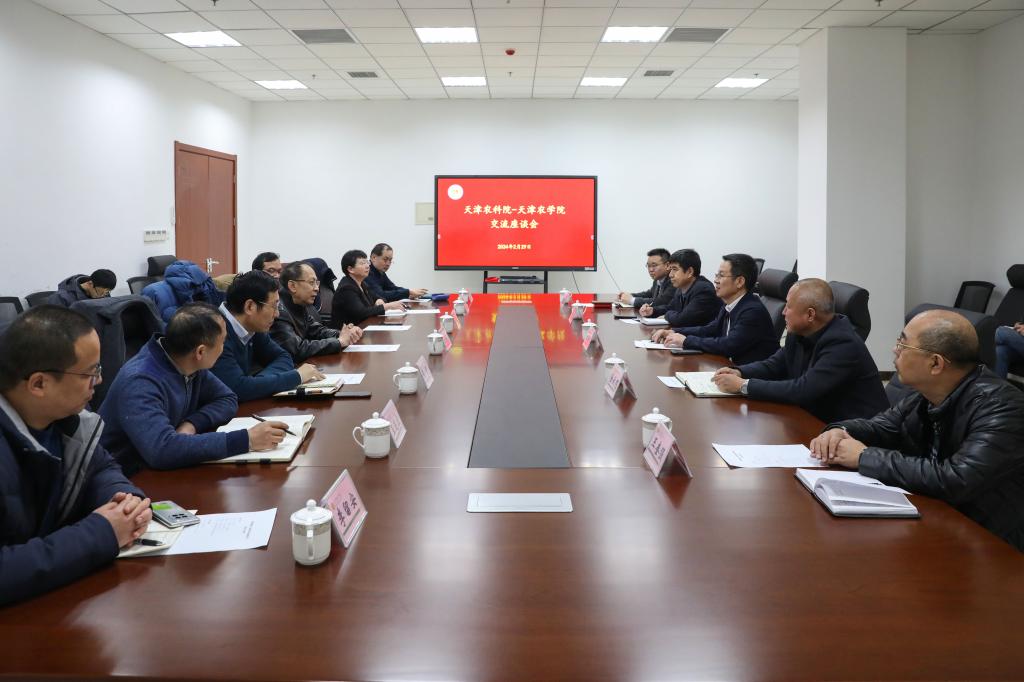 2月29日,天津市农业科学院党委书记李金田,党委副书记、副院长金天明一行到beat365访问。校党委书记王延文,校党委副书记、校长金危危,校党委常委、副校长张民会见来宾,并进行座谈。
