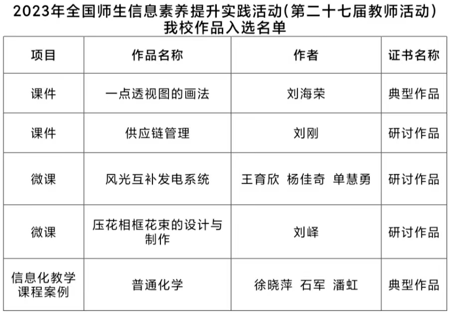 本活动由教育部教育技术与资源发展中心(中央电化教育馆)主办,旨在提高全国教师数字素养,深化课程改革,全方位提升教师信息素养。本届活动自2023年4月启动以来,学校高度重视,精心组织,报送的5件作品全部入选。