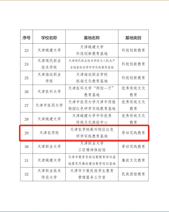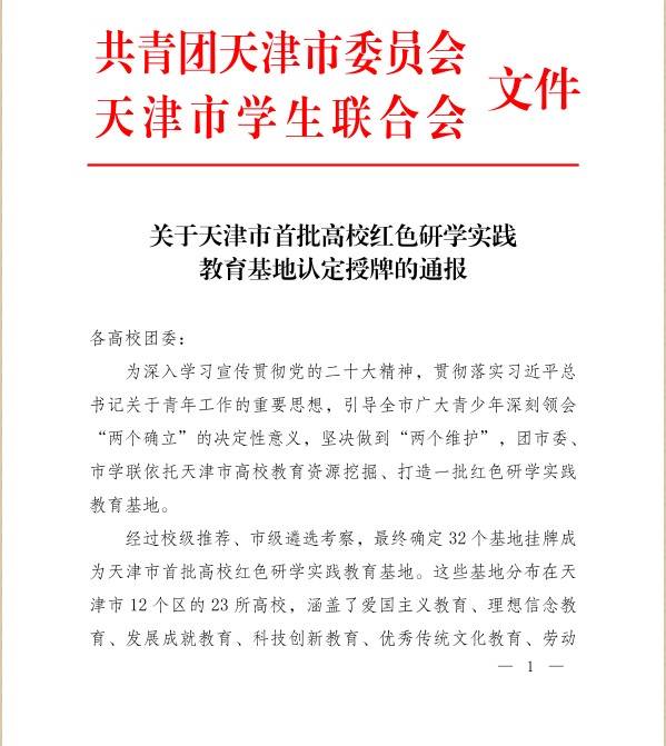 近日,共青团天津市委员会、天津市学生联合会公布了天津市首批高校红色研学实践教育基地名单,beat365蓟州校区红色研学实践教育基地成功获批。