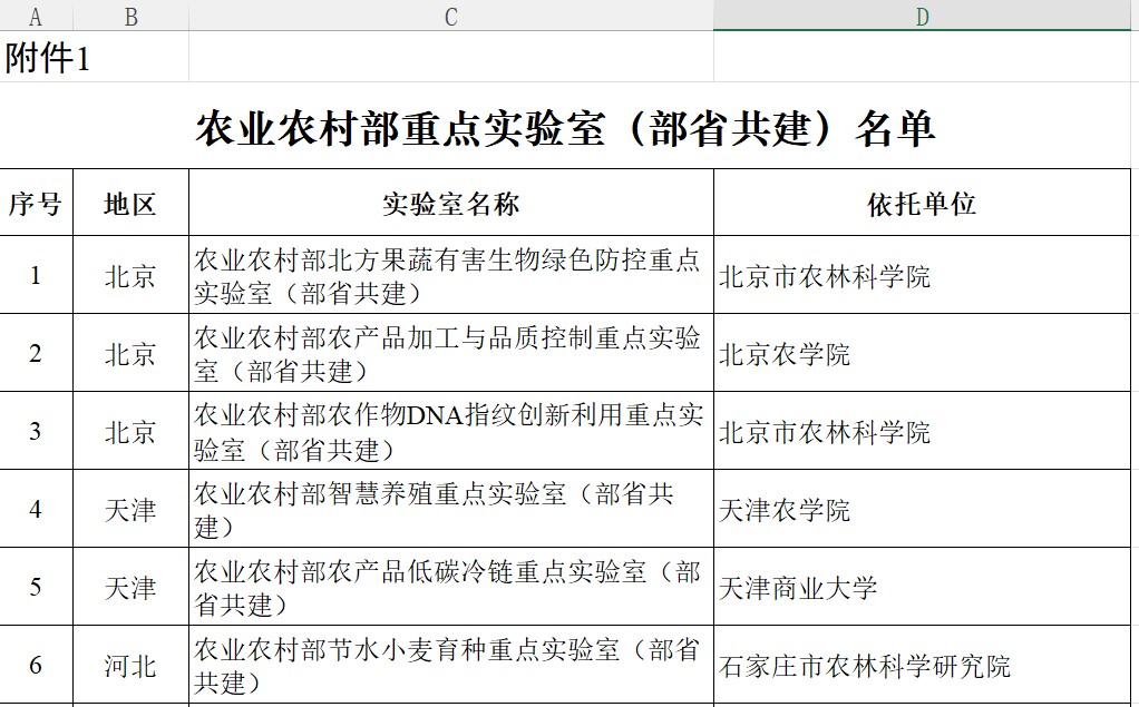 首次获批农业农村部重点实验室(部省共建)