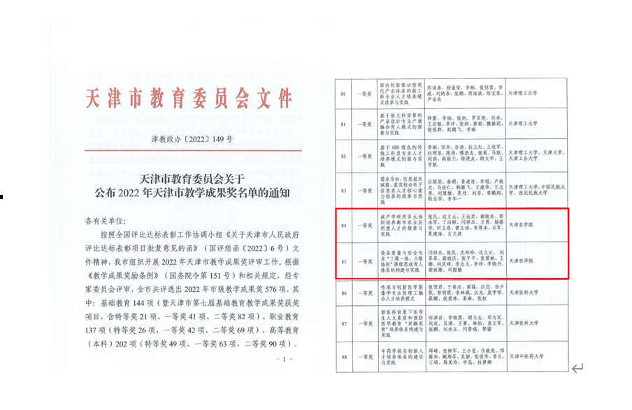 获天津市教学成果一等奖2项