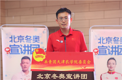 宋涛向北京冬奥宣讲团的到来表示热烈欢迎。他指出,北京是奥林匹克百年历史中,唯一一个既举办过夏季奥动会,又将举办冬奥会的城市。新时代、新形象、新梦想,中国将在飞速发展的同时,与世界人民肩并肩、手挽手、心连心,共创和谐奥运的新景象!天农全体师生将一起携手并肩,参与更多的奥林匹克教育活动,思源奋进,不负韶华,传递梦想,助力冬奥,争做奥林匹克精神的践行者、全民健身事业的先行者、社会文明进步的推动者、中华优秀文化的传播者与扶残助残爱残的示范者。