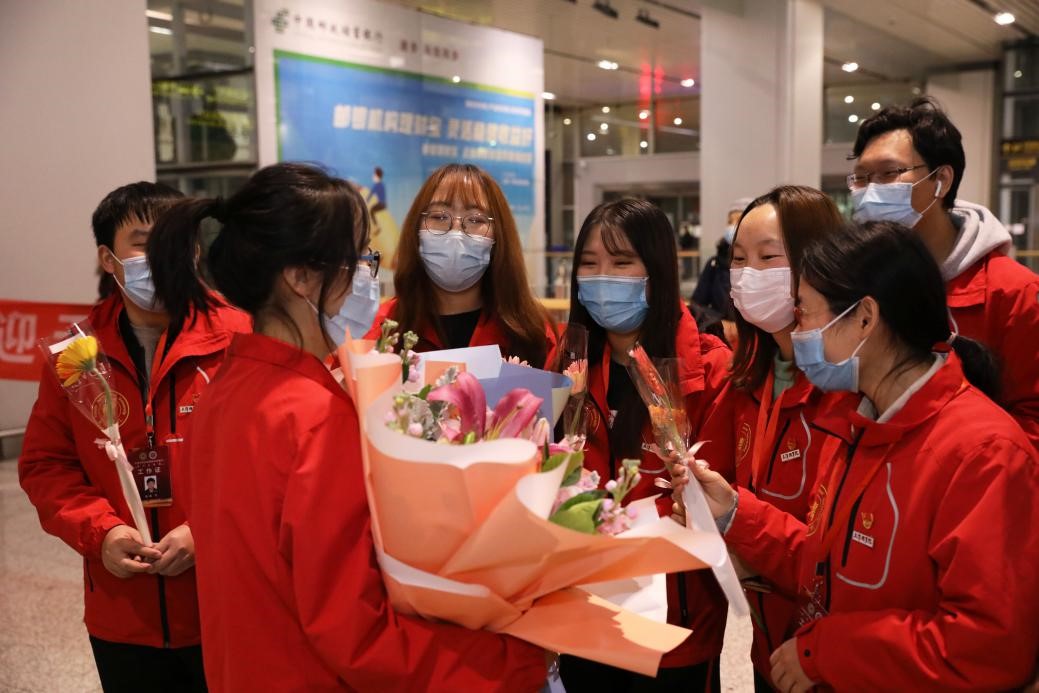 支教团师生抵达后,学校在机场大厅举行了简短的迎接仪式。支教团每一位师生第一时间收到了学校师生送上的鲜花,倍感温馨。在欢迎仪式上,校党委副书记宋涛首先转达了学校党委和全体师生对支教团师生的问候,欢迎老师和同学们平安载誉归来,祝贺支教团圆满完成了光荣的支教工作,感谢支教团全体师生富有成效的辛苦付出。他说,此次援疆支教工作,市委市政府和市教育两委始终高度重视,全程关注,给予具体指导和帮助,学校党委行政始终关心关怀支教团的师生,以各种形式及时送去慰问。三个月来,支教团师生带着使命和责任真情支教,为边疆地区的教育事业贡献自己的力量,充分展现了天农师生的青春风采。希望大家继续发扬天农精神,在新的一年取得更大的成绩和收获。