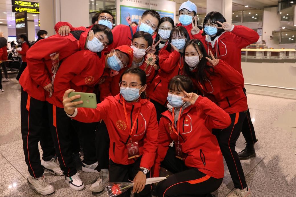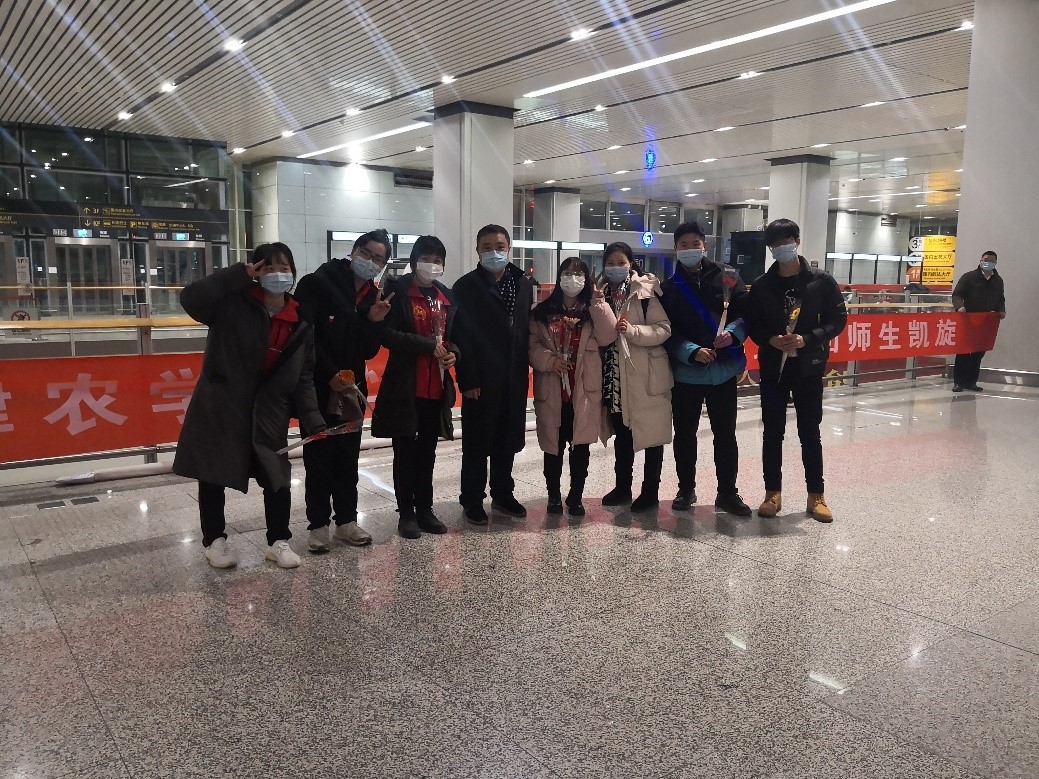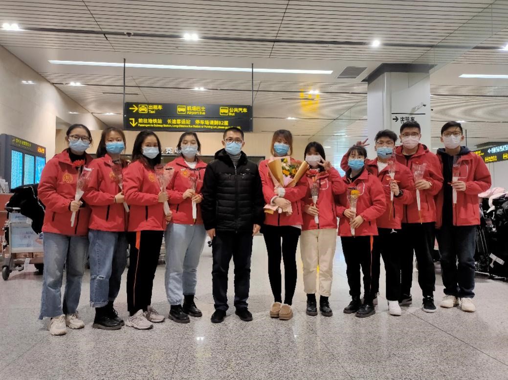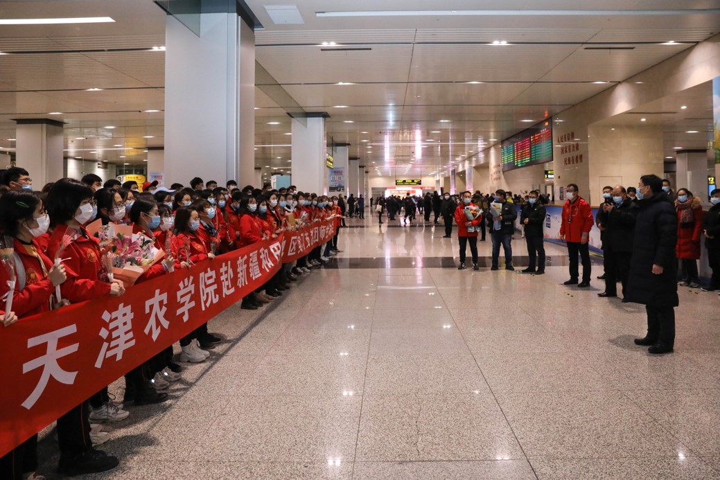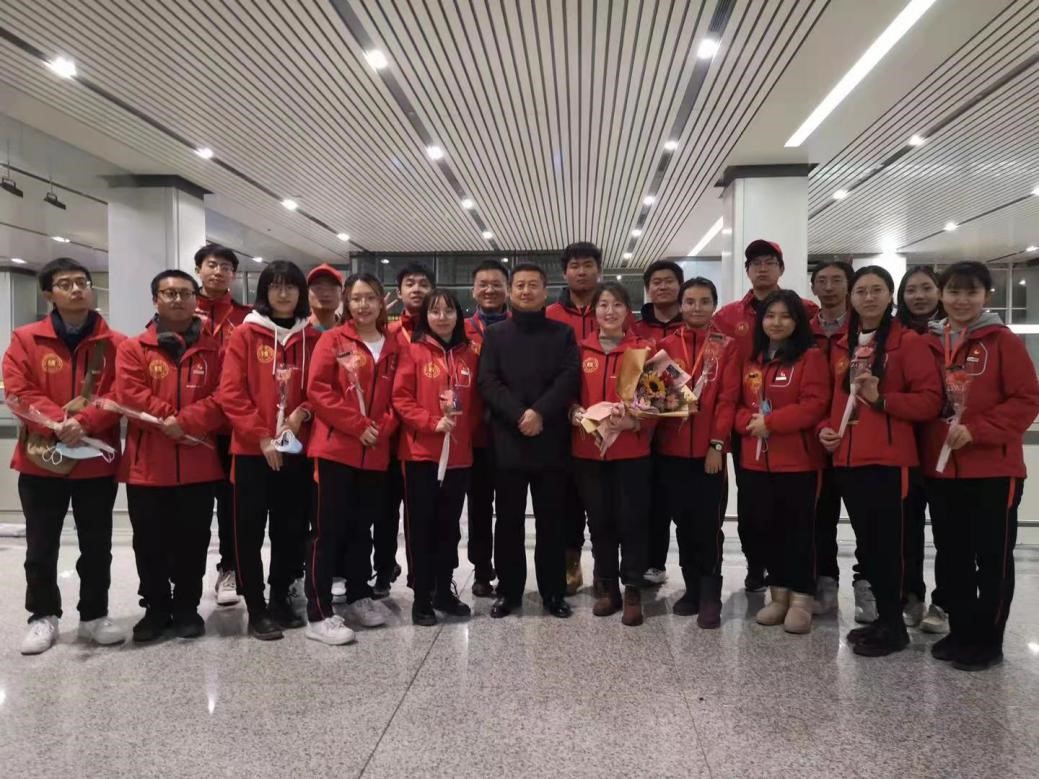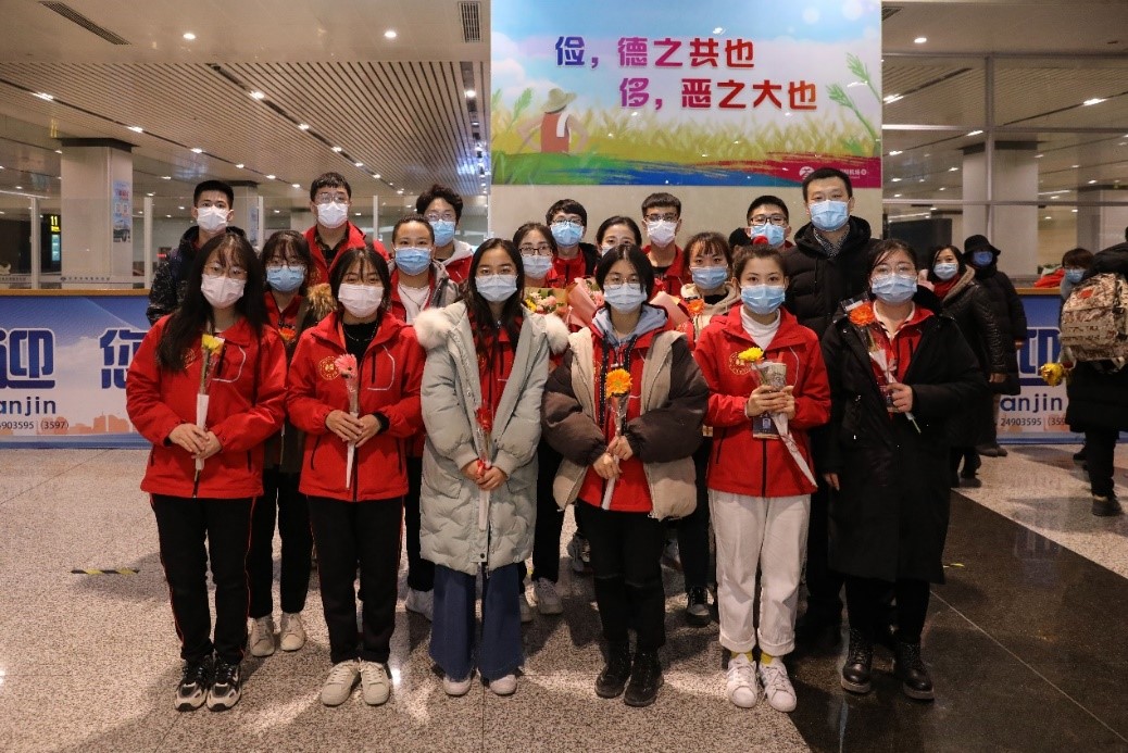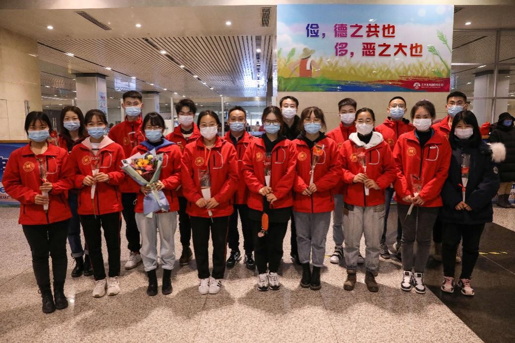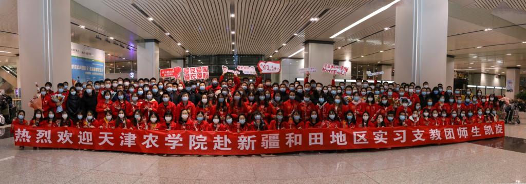 2020年12月30日晚,beat365赴新疆和田地区实习支教的140名师生带着津和两地人民的深情厚谊,圆满完成各项任务平安抵达天津。按照学校党委安排,校党委副书记宋涛带队前往天津滨海国际机场迎接载誉而归的实习支教团师生,党办、组织部、宣传部、学工部、研工部、校团委及各学院的负责同志一同到机场迎接。