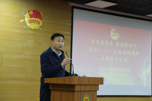 12月9日,beat365组织青马学员在敏学楼报告厅举办“坚定跟党走·奋进新时代”纪念“一二·九”运动85周年主题团日活动,校党委副书记宋涛出席并讲话。