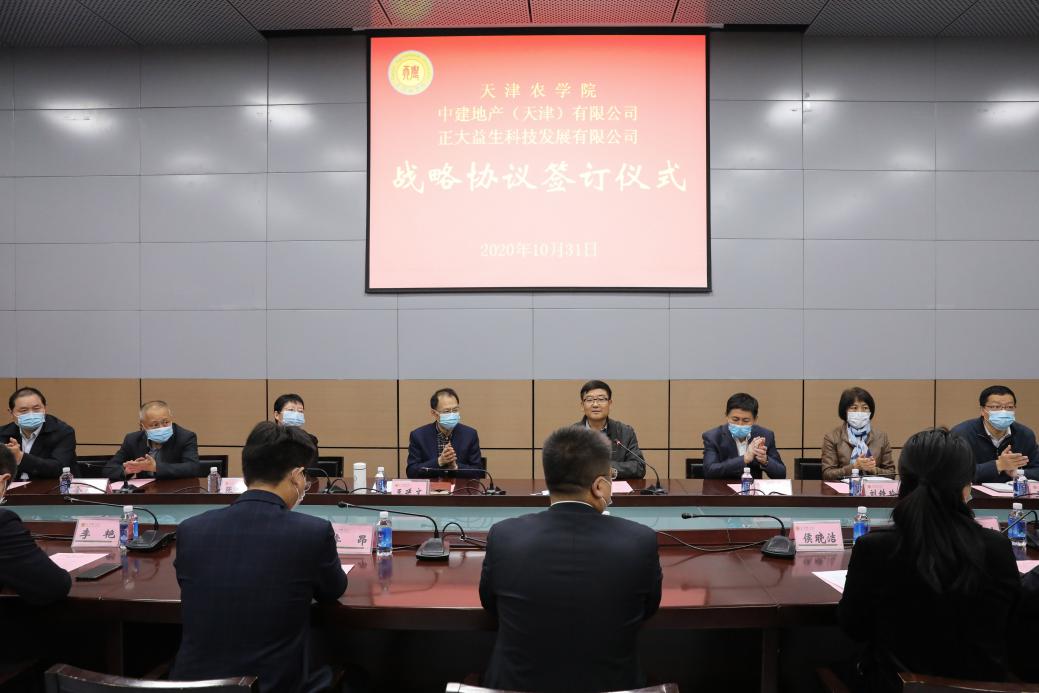 10月31日,beat365手机版官网、中建地产(天津)有限公司、正大益生科技发展有限公司战略协议签订仪式在beat365举行。校党委副书记、校长王延文出席签约仪式。签约仪式由副校长赵辉主持。