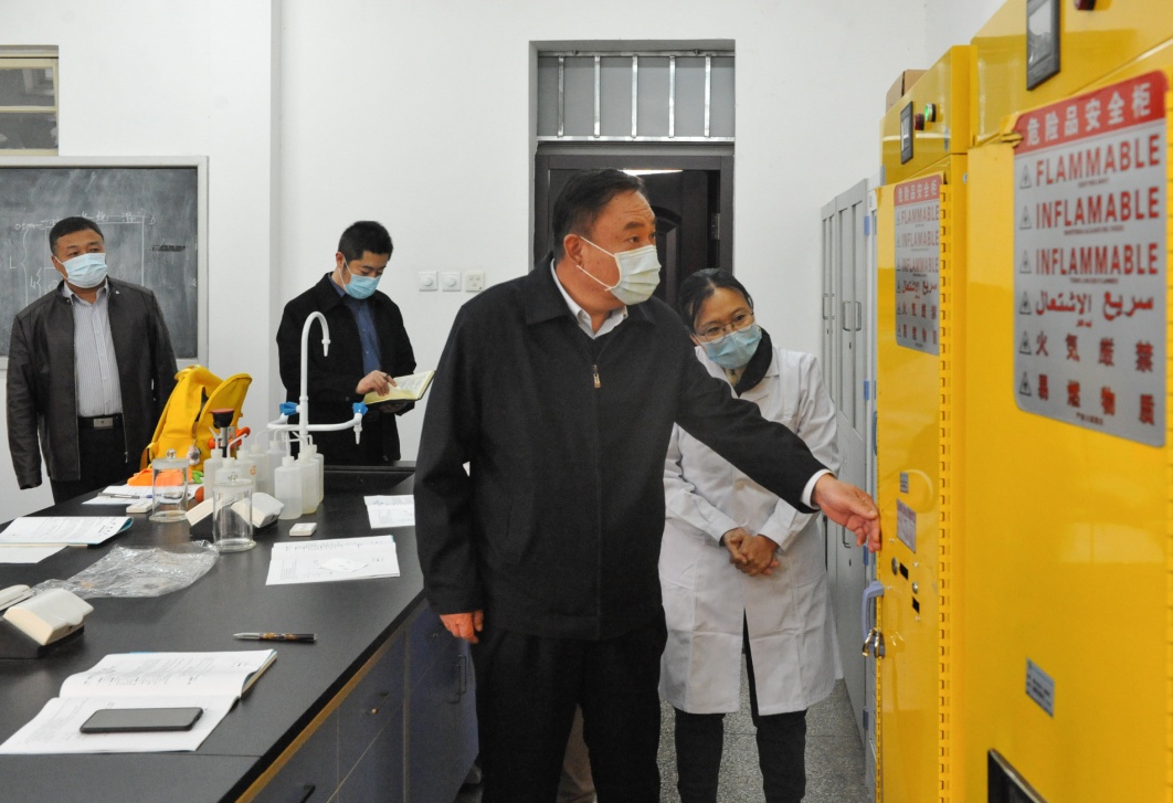 近日,校党委书记孙守钧,校党委副书记、校长王延文等校领导分别带队对东、西校区化学品安全、消防安全、食品安全、施工安全等方面进行了全面的检查。