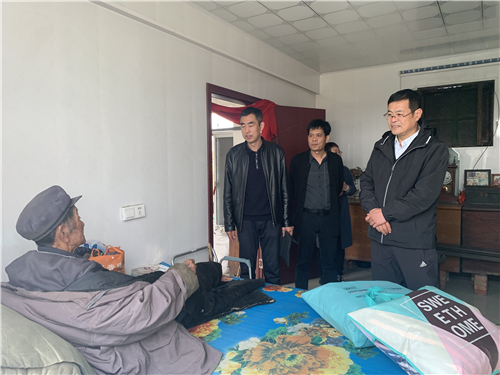 座谈后,王繁珍一行分组到中于飞村、后刘瘸村五保户、低保户家中慰问,将学校准备的毛毯、棉被等御寒物资送到他们手中。