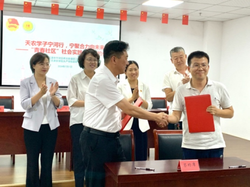 会上,宁河区桥北街道党工委书记焦健、宁河团区委副书记满继荣、水产学院党委副书记李飞跃共同为“大学生社会实践基地”揭牌,宁河区桥北街道与水产学院签订社会实践共建协议。