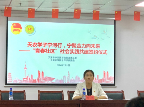 7月1日,水产学院团委与宁河区桥北街道团工委共同签订共青团工作“共建协议”,并在桥北街道开展首次社会实践活动,共同庆祝中国共产党成立103周年。