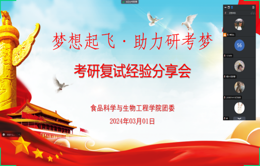3月1日,食品科学与生物工程学院团委组织召开“梦想起飞·助力研考梦”考研复试经验分享会,学院毕业班辅导员参加并主持分享会。
