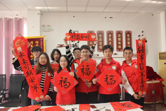 在“墨香四溢迎新春,书写春联送万福”“包饺子,话家常”环节,学院兰亭社成员现场挥毫泼墨书写福字和对联,其他党员同志一起包饺子,同时讨论乡村振兴发展的重难点,献计献策,场面融洽温馨。