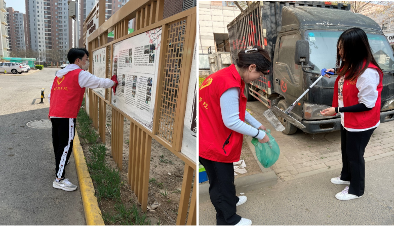 3月30日,人文学院师生走进张家窝镇民盛里社区,与社区志愿者们一起开展了卫生清整和垃圾分类宣传活动。