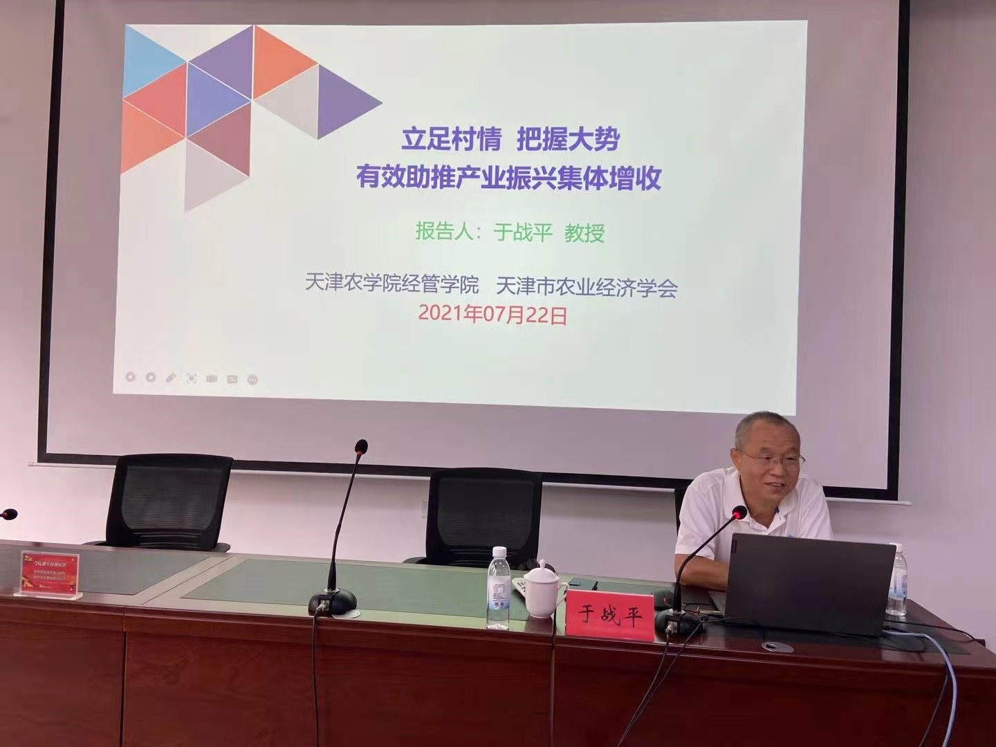 7月22日,天津市农业经济学会理事长、beat365经济管理学院于战平教授应邀在全市经济薄弱村驻村工作队长(第一书记)培训班上开展题为“立足村情,把握大势,有效助推产业振兴集体增收”的专题培训。