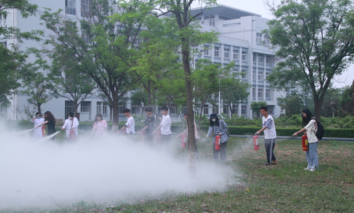 保卫处干部向师生介绍了消防器的使用,并在现场一一做了演示。部分同学在他们的指导下还亲自操作灭火器灭火演练,模拟火灾现场进行实战演习。
