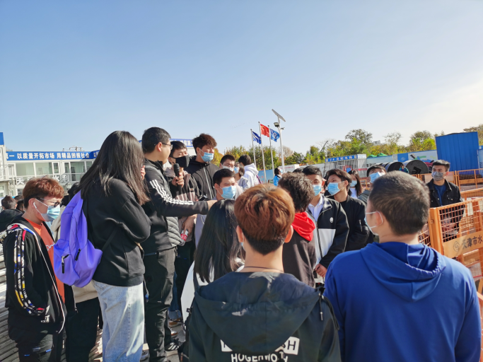 在校实验楼施工现场,中铁十八局技术人员向学生详细讲解了混凝土桩的施工全过程,包括设备选用、泥浆制备、钻孔、清孔、终孔验收、钢筋作业、混凝土浇筑等。此外,指导教师孙书洪教授根据理论课程特点进行了补充讲解。通过实地参观和现场讲解,学生对工程施工有了更深层次认识。实习期间,恰逢校党委副书记、校长王延文到实验楼施工工地现场调研工作,他鼓励同学们认真实习,掌握施工技能。