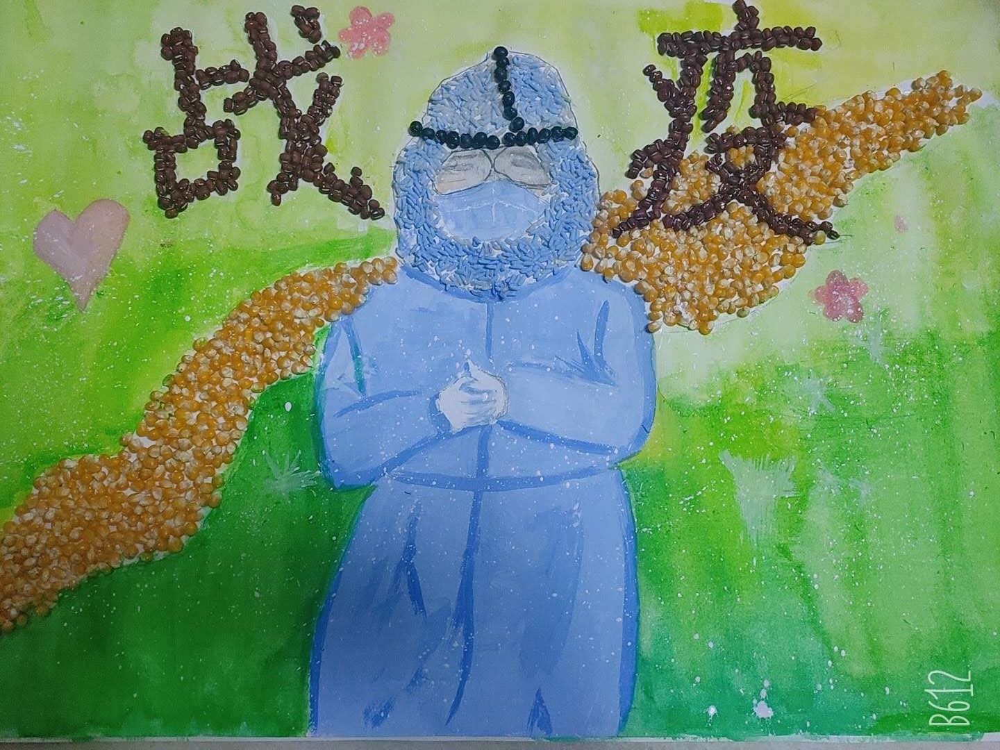 同学们运用所学专业知识,积极组织召开班级视频会议讨论交流,使用稻米、绿豆、芝麻、红豆等作物种子制作出一幅幅精美的作品,将对祖国和人民的美好祝福和对防疫英雄的崇高敬意融入到画作之中。