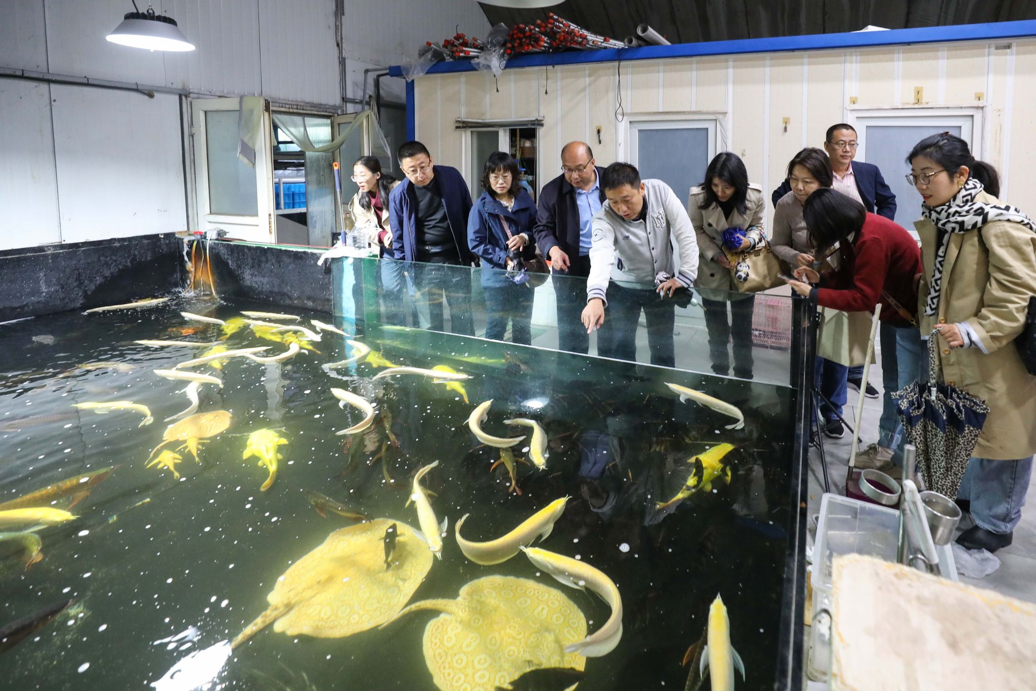 随后,大家参观考察了天津市庆祥伟业农业技术开发有限公司,实地参观了该公司的观赏鱼养殖基地和直播基地。