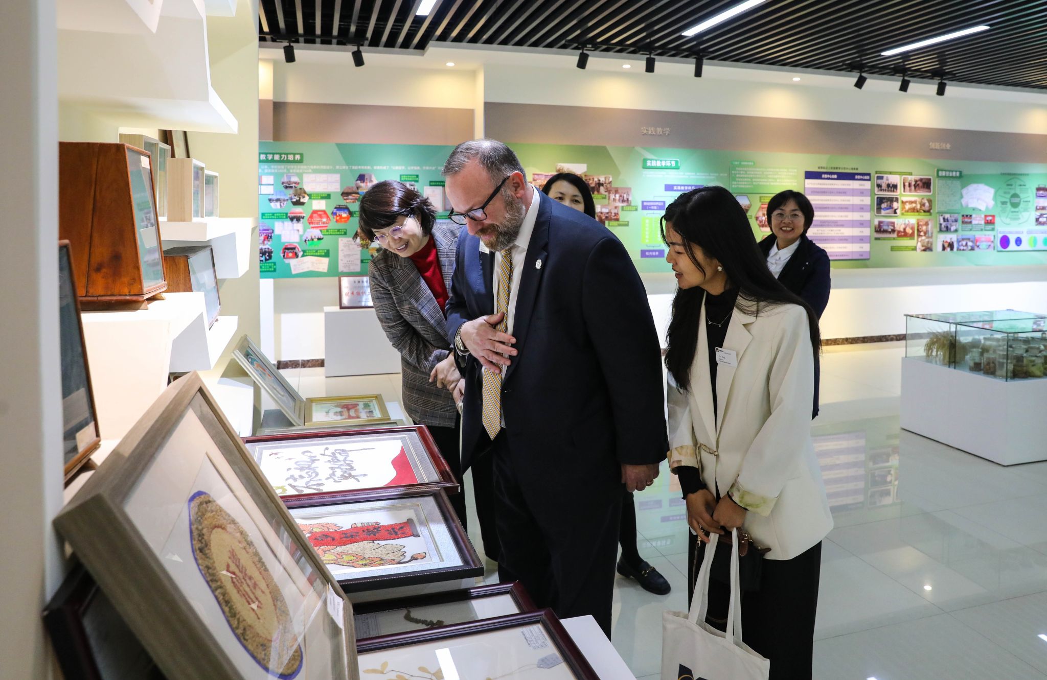 代表团一行首先参观了校史馆,在详细了解beat365的发展历程、办学特色以及在教学、科研等方面取得的显著成就后,对beat365深厚的文化底蕴和鲜明的办学特色表示高度赞赏。