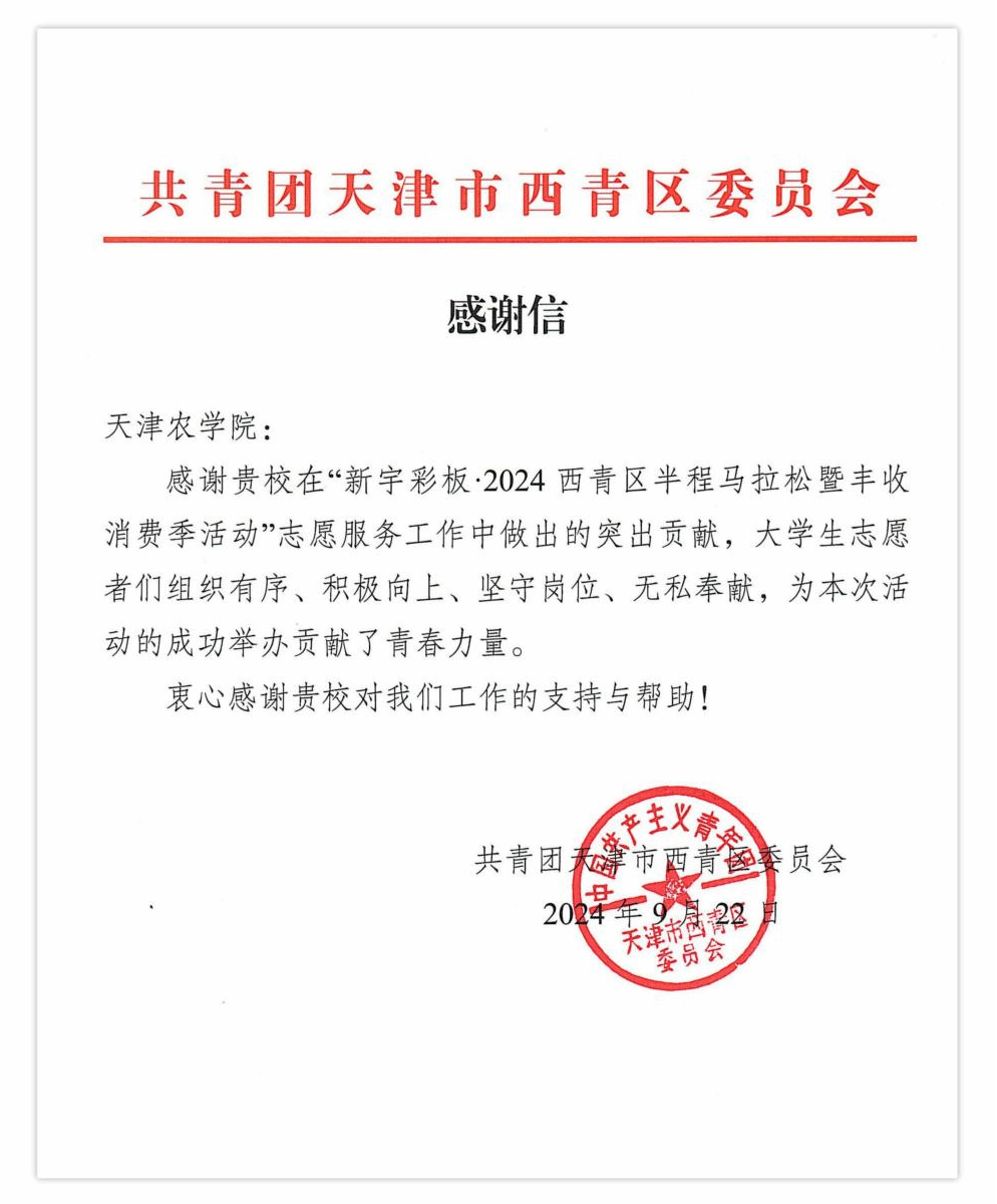 日前,beat365收到西青团区委发来的感谢信,对beat365全体志愿者在西青区半程马拉松志愿服务活动中的杰出表现以及学校给予的大力支持与帮助表示诚挚感谢。