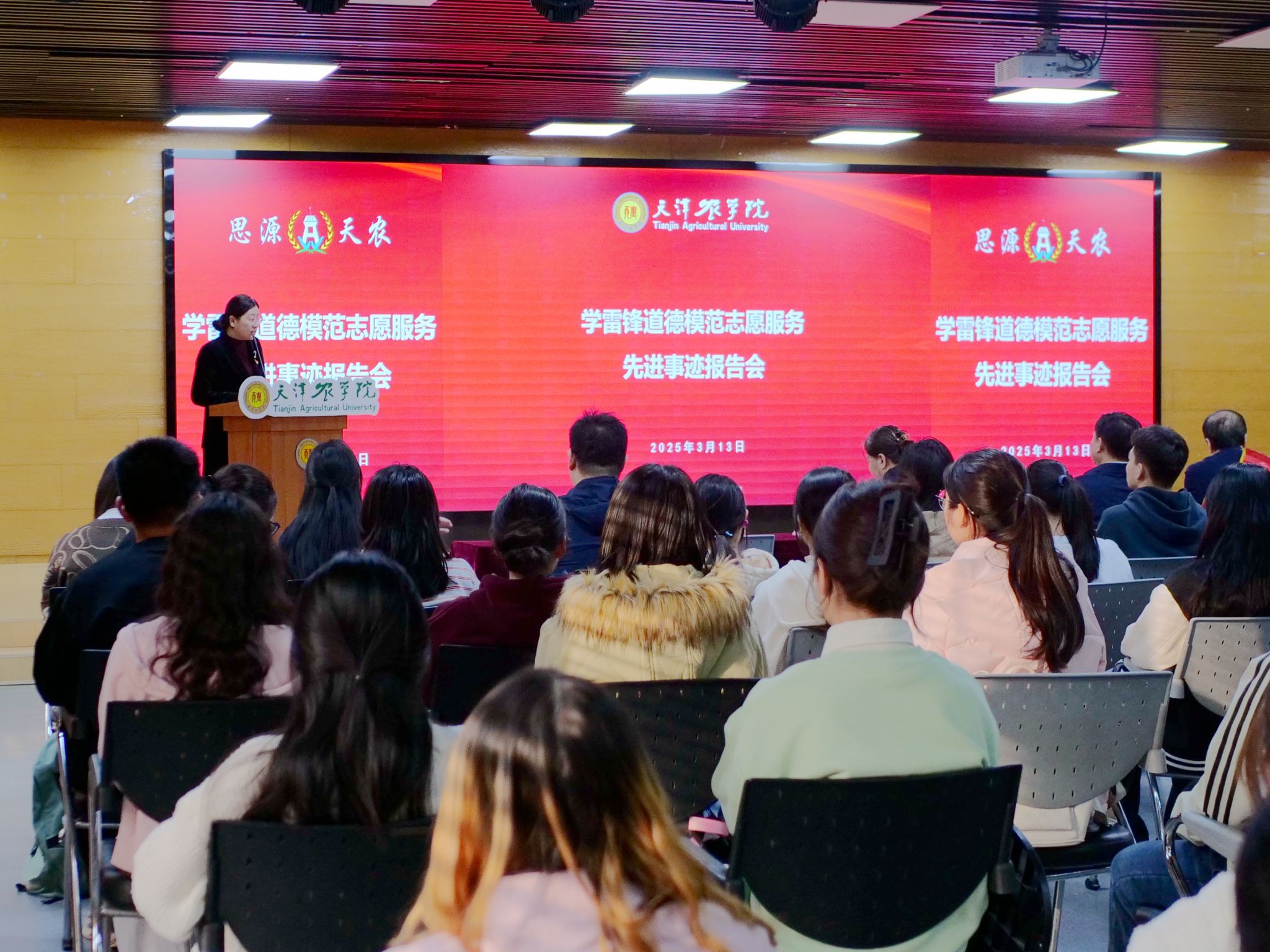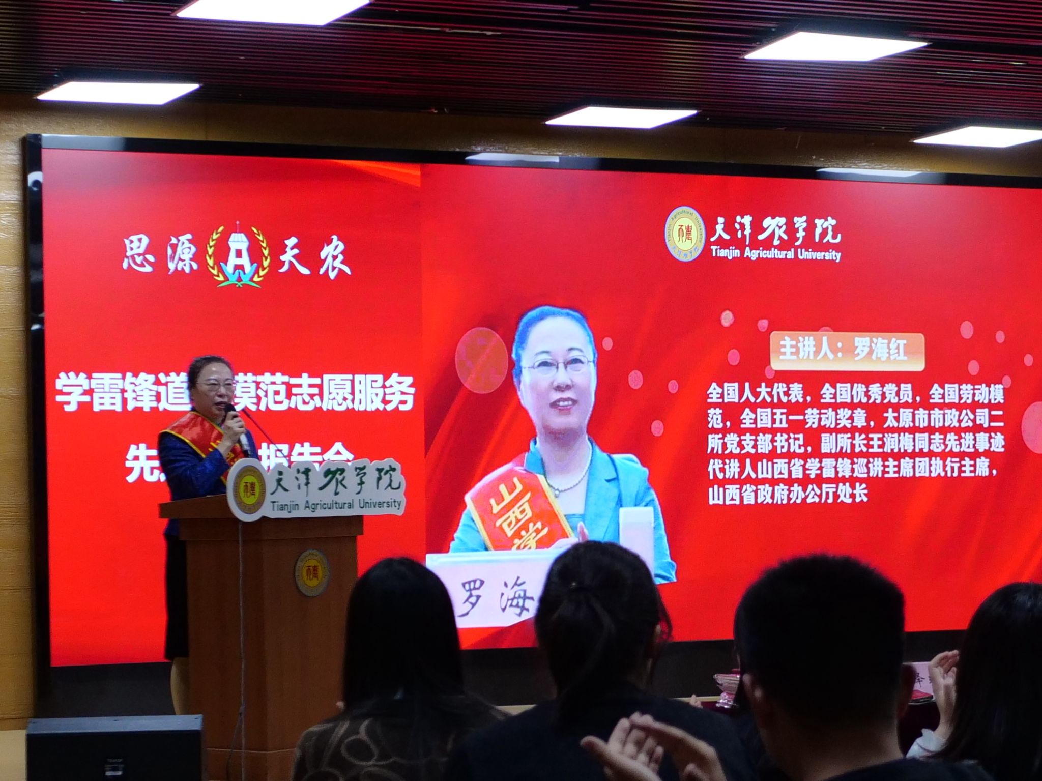 山西省学雷锋巡讲主席团执行主席、山西省五一劳动奖章获得者、山西省政府办公厅罗海红处长以《雷锋精神永传承,爱岗敬业献爱心》为题讲述了全国人大代表,全国优秀党员,全国劳动模范,太原市政建设管理中心二所党总支书记,副所长王润梅的事迹,王润梅干一行、爱一行、钻一行的敬业精神感染着每一位听众,罗海红结合beat365“思源·奋进”文化育人任务目标,号召全体同学要厚植“爱党 爱国 爱农 爱校”情怀,并欢迎同学们到山西去,真正践行“把论文写在祖国大地上”的使命,以“向下扎根”的服务意识诠释青春本色。