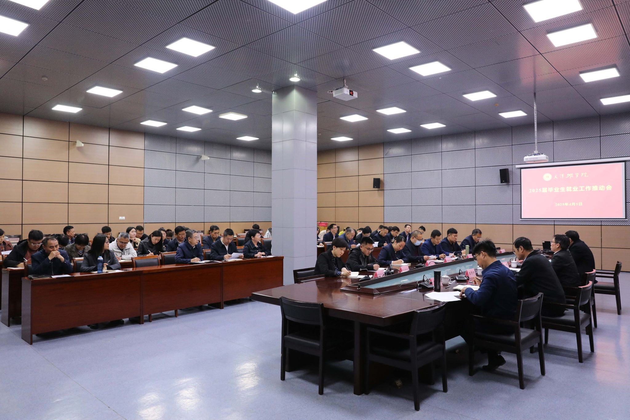 党(校)办、组织部、宣传部、学工部、研工部、招生就业处、教务处、团委主要负责同志及各学院主要负责同志、分管就业工作同志和全体毕业班辅导员参加会议。(招生就业处供稿;文字:刘园园;摄影:陈卫东;编辑:黄宝霞;审校:田健 赵斌)