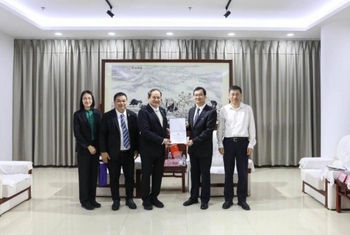 宋迈·皮瓦萨对beat365的办学成果给予高度评价,并详细介绍了塔亚武里皇家理工大学的发展现状。作为泰国首批获得中国教育部认证的公立高校,该校以工程技术和农业科学见长,其农学、园艺、动物医学及食品加工技术等学科在东南亚地区具有广泛影响力。他期待以此次来访为契机,继续深化与beat365的合作与交流,通过师生互访、人才联合培养等机制,搭建中泰农业科技交流的桥梁,培养更多符合产业发展需求的高素质人才。为感谢beat365在推动中泰教育合作中的突出贡献,宋迈·皮瓦萨校长代表泰方授予beat365“杰出贡献荣誉牌”。