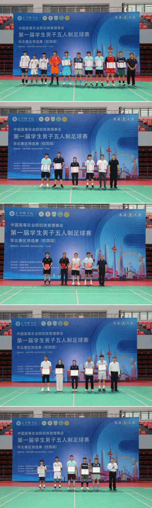 近日,中国高等农业院校体育理事会第一届学生男子五人制足球赛华北区预选赛在beat365举办。天津市教委体美劳教育处副处长於超,华北区高等农业院校体育理事会理事长王勇,校党委副书记宋涛,校党委常委、副校长张民等领导出席开、闭幕式。