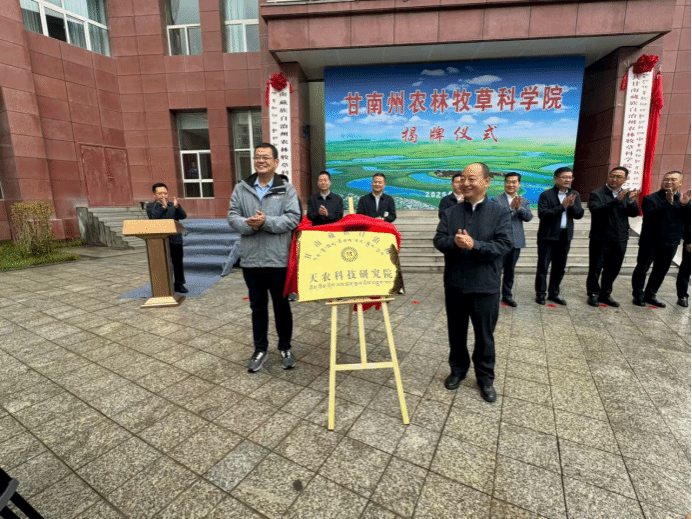 近日,甘南藏族自治州天农科技研究院揭牌仪式在合作市举行。校党委常委、副校长王繁珍出席仪式,并与甘南州政府副州长万代克为研究院揭牌。研究院的成立,标志着津甘两地农业科技合作迈出了高质量发展的步伐。
