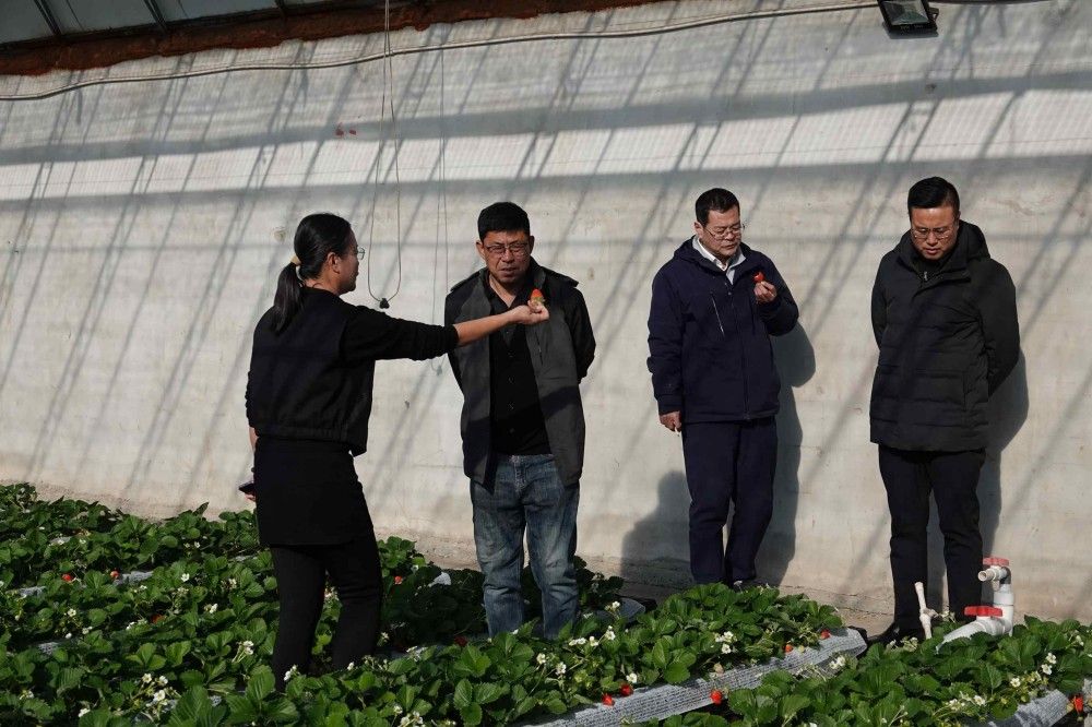 随后,回访组走访了2024年“头雁”学员呼智田经营的家庭农场。在现代化草莓大棚内,两位教授实地察看了草莓长势,并围绕产业提质增效进行了针对性把脉。王繁珍教授重点关注传统农业向智慧化、体验化转型升级。他指出,应推动建立数据驱动的草莓精准种植体系,并结合全流程数字溯源系统,用“草莓数字身份证”“草莓履历”等形式,以透明可信的数据闭环赋能品牌价值提升。王丽娟教授则聚焦于栽培技术优化与品质提升,从品种选择、茬口安排到花期管理、绿色防控等环节进行了细致指导,强调通过精准的温光水肥调控和绿色生产技术,在保障产量的同时,显著提升草莓的糖度、风味和外观一致性,从而增强市场竞争力。她还分享了采后保鲜与商品化处理的最新实用技术。