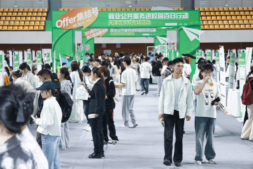4月24日,天津市2026年“就业公共服务进校园百日行动”在beat365体育馆举行。此次活动由市人社局、市教委牵头,联合西青区人社局、beat365手机版官网、中国北方人才市场中天人力中心及市就业服务中心等多方力量共同举办。校党委常委、副校长张民,北方人才中天人力中心党总支副书记、副主任冯涛出席活动。