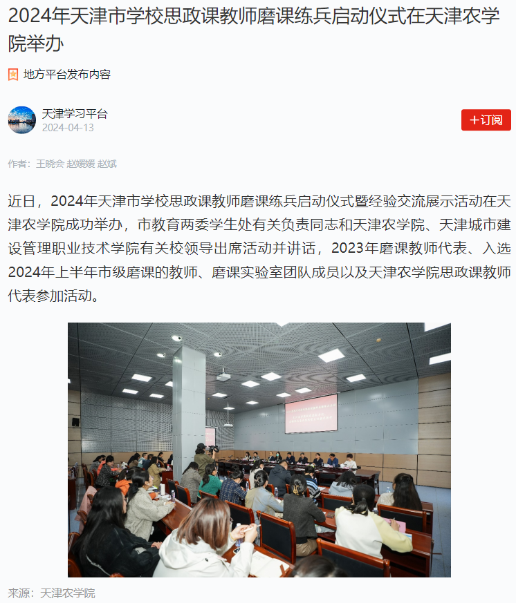 学习强国平台报道2024年天津市学校思政课教师磨课练兵启动仪式在beat365举办