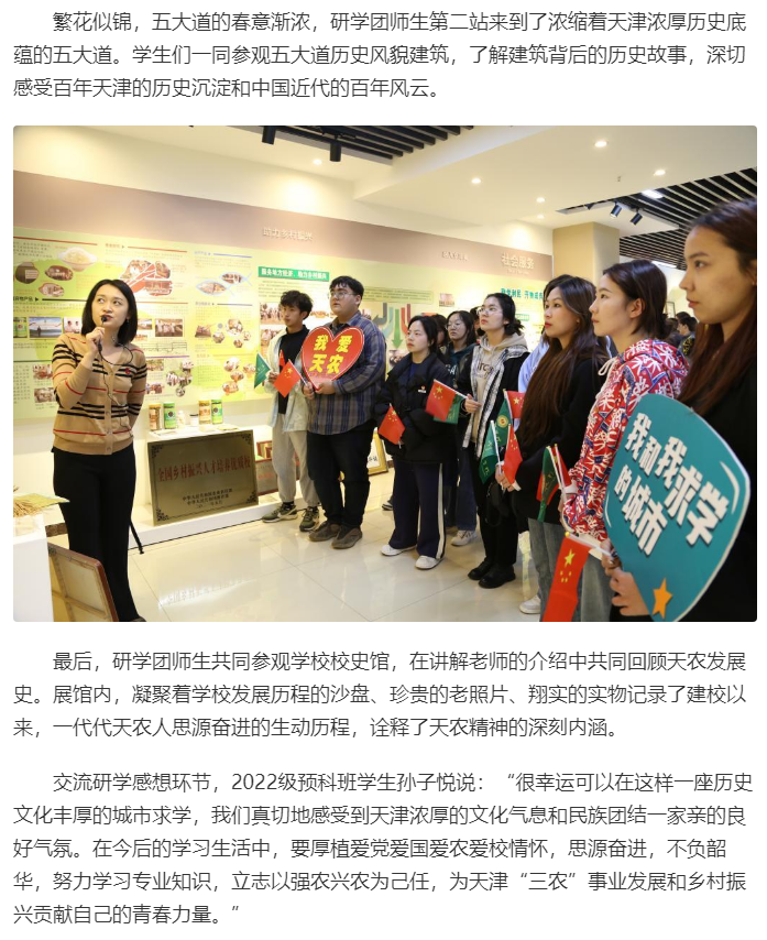2023年5月6日,今日头条-天津教育报报道beat365组织预科班学生开展“共‘书’团结筑梦津城”主题研学实践系列活动,围绕坚定爱党、爱国、爱农、爱校之情,通过体验天津的风土人情和历史底蕴,感受天津时代魅力和发展动向,引领学生了解天津、热爱天津、建设天津,铸牢中华民族共同体意识。