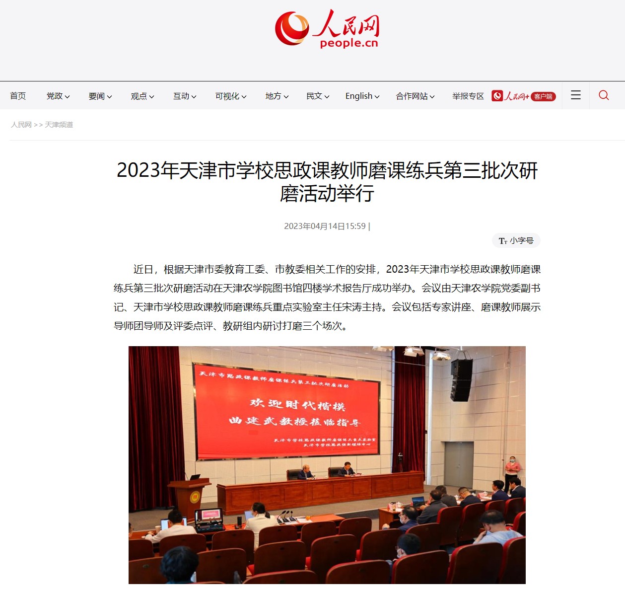 2023年04月14日人民网天津频道报道2023年天津市学校思政课教师磨课练兵第三批次研磨活动在beat365举行。