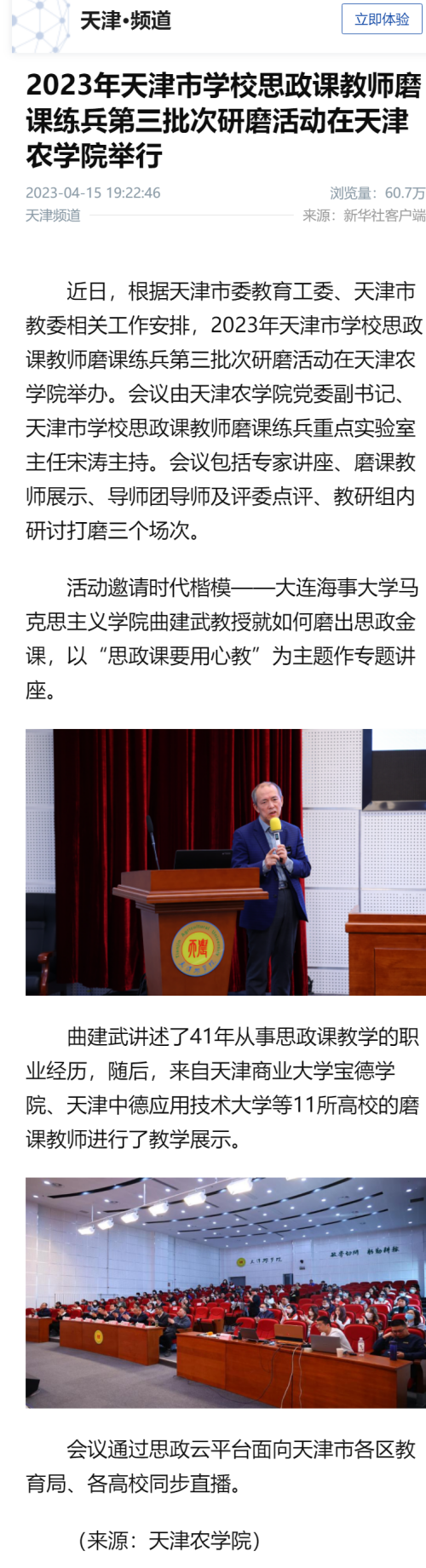 新华社客户端报道2023年天津市学校思政课教师磨课练兵第三批次研磨活动在beat365举行