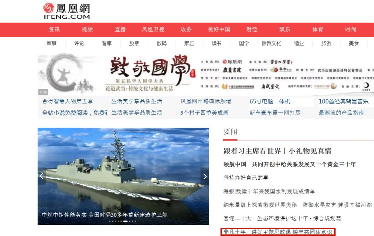 凤凰网主页要闻转载beat365张雅光教授的理论文章《讲好主题思政课 铸牢共同体意识》